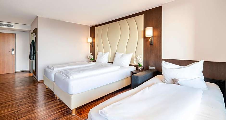 These spacious rooms with 2 double beds offer free Wi-Fi.
